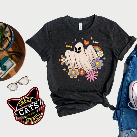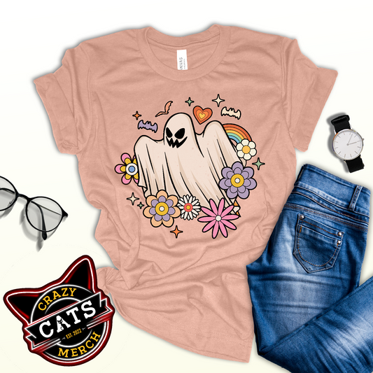 Retro FLoral Ghost Happy Halloween Trick or Treat Unisex Light Tee