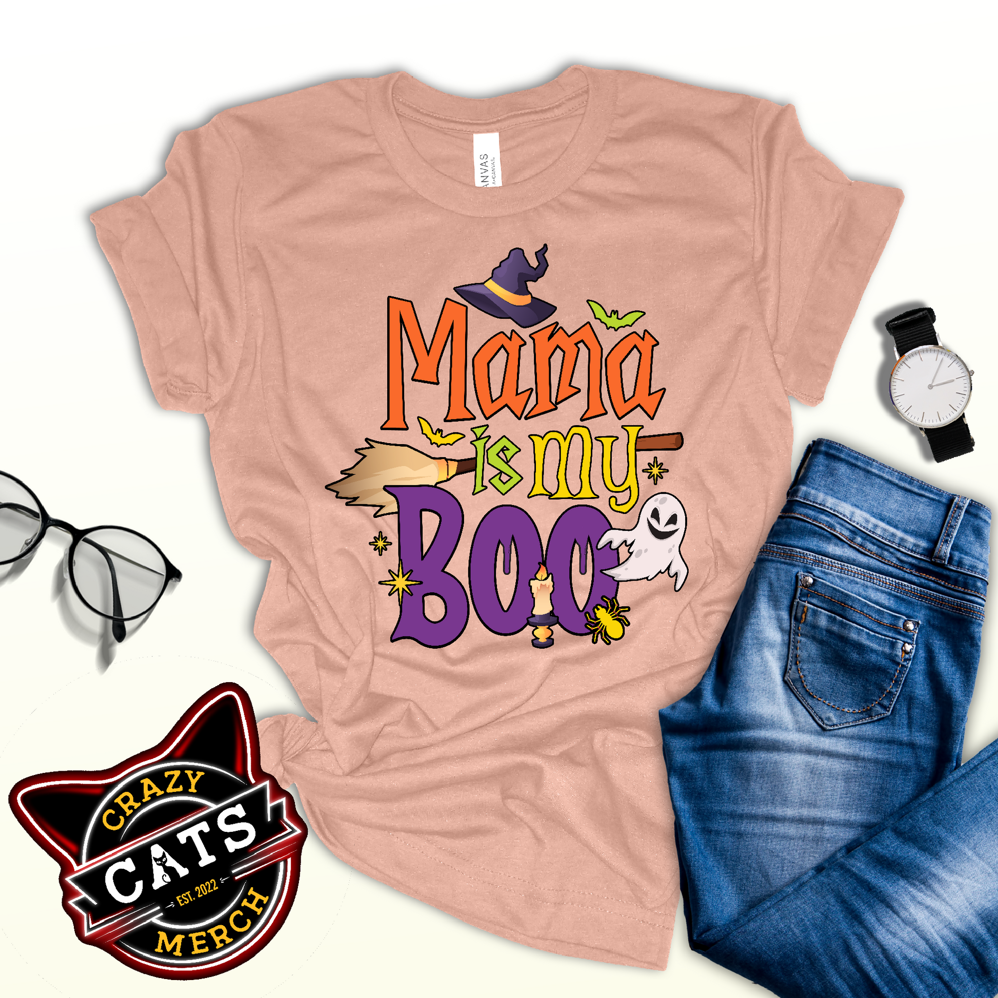 Mama Is My Boo Funny Halloween Ghost Spooky Season Unisex Light Tee