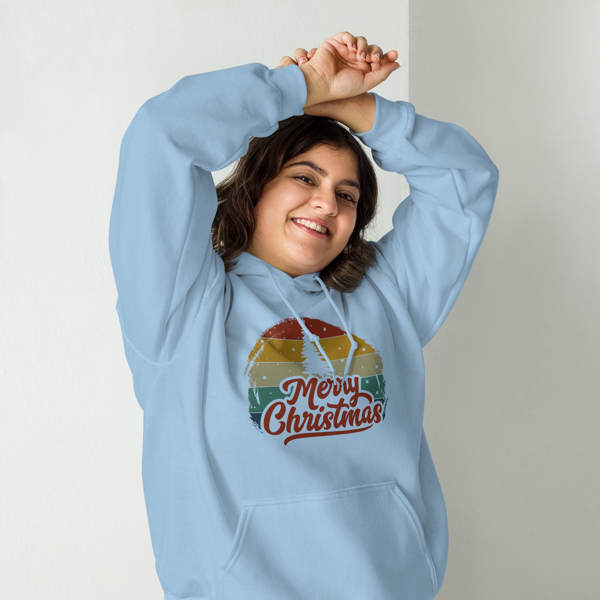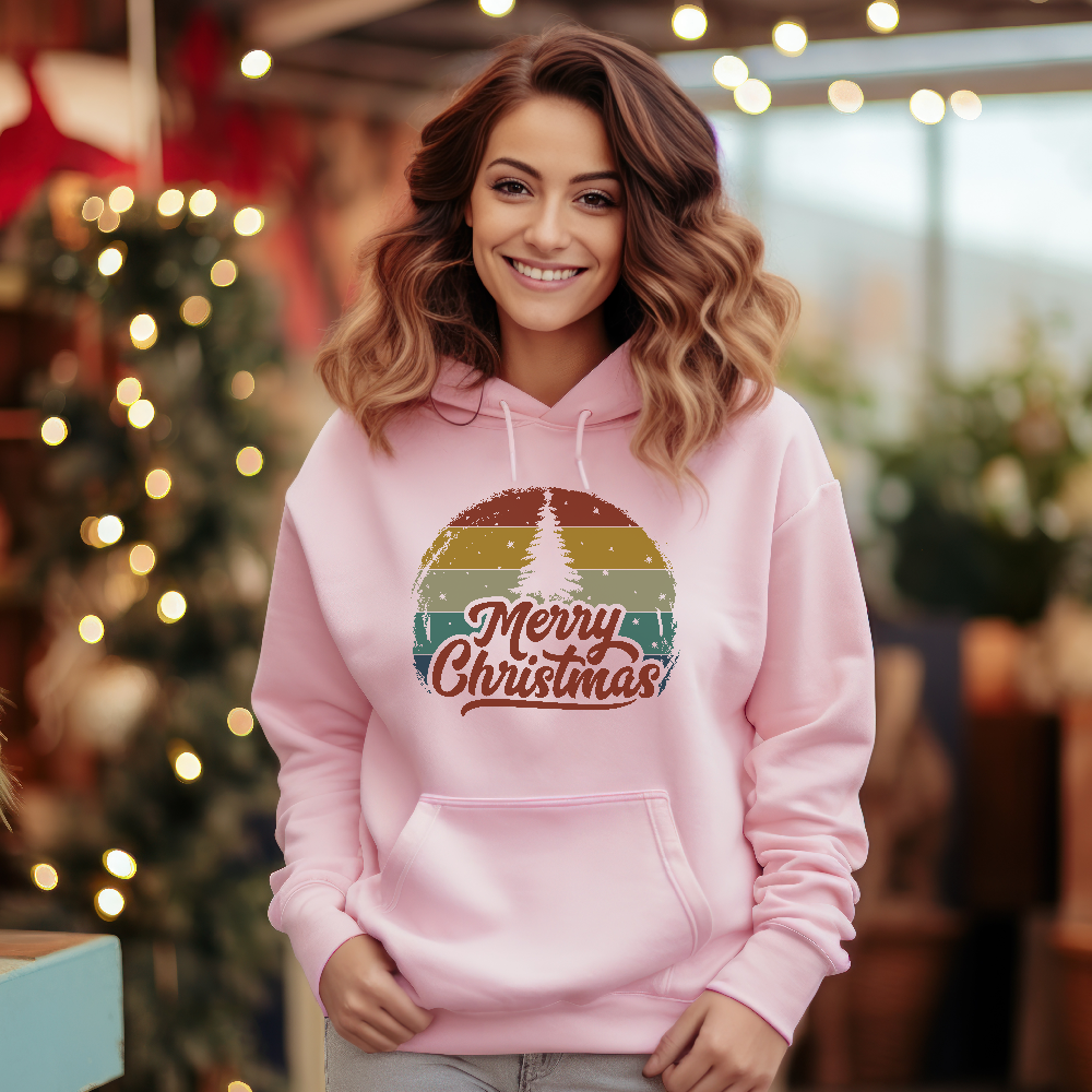 Retro Merry Christmas Holiday Tree Xmas Unisex Light Hoodie